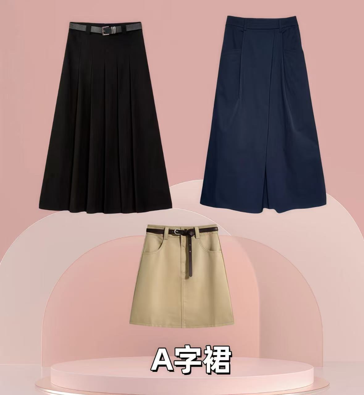 梨形姐妹(大腿粗、屁股大)请选择A型!从腰线开始自然散开的版型,像“小伞”一样把肉肉藏得严严实实。