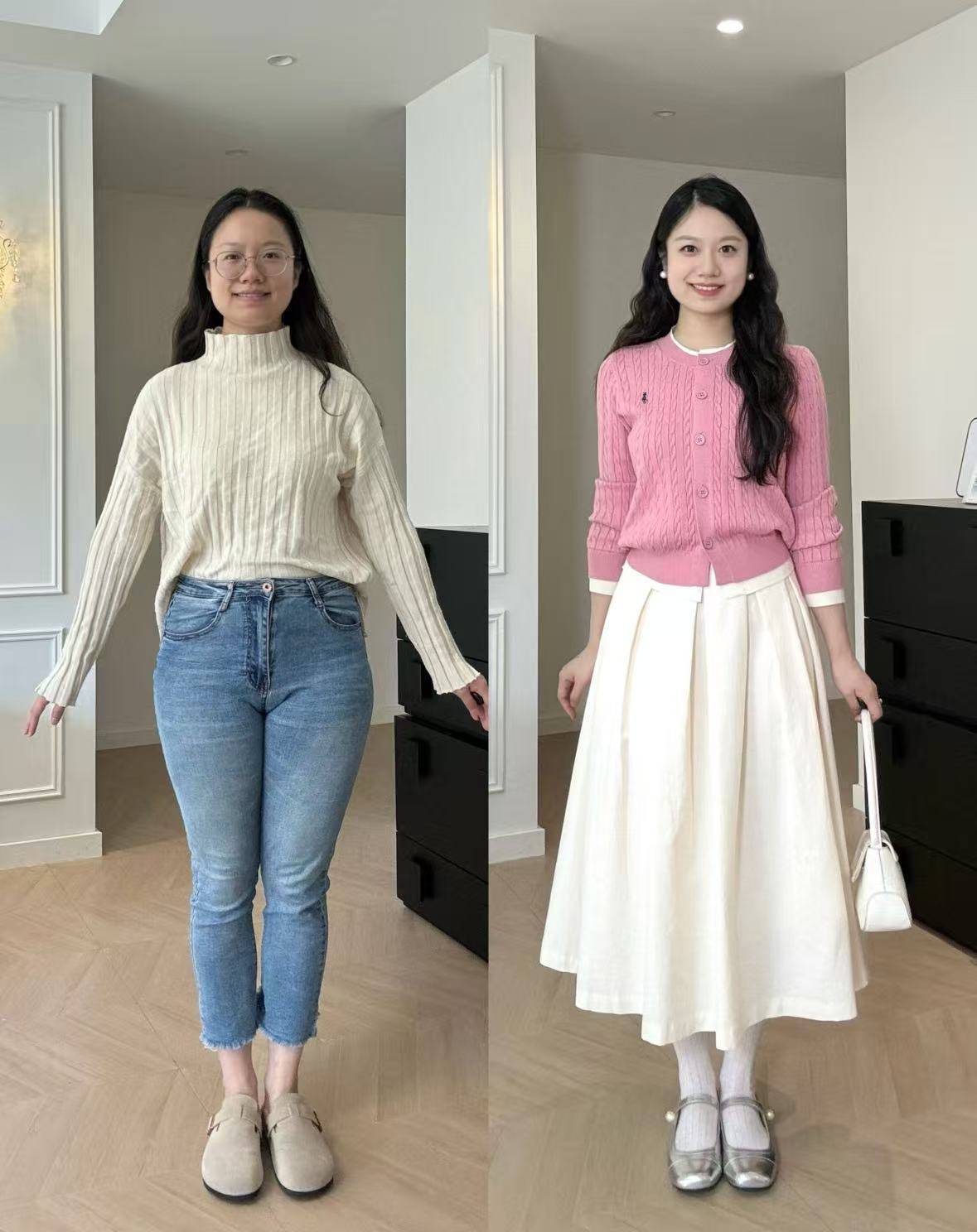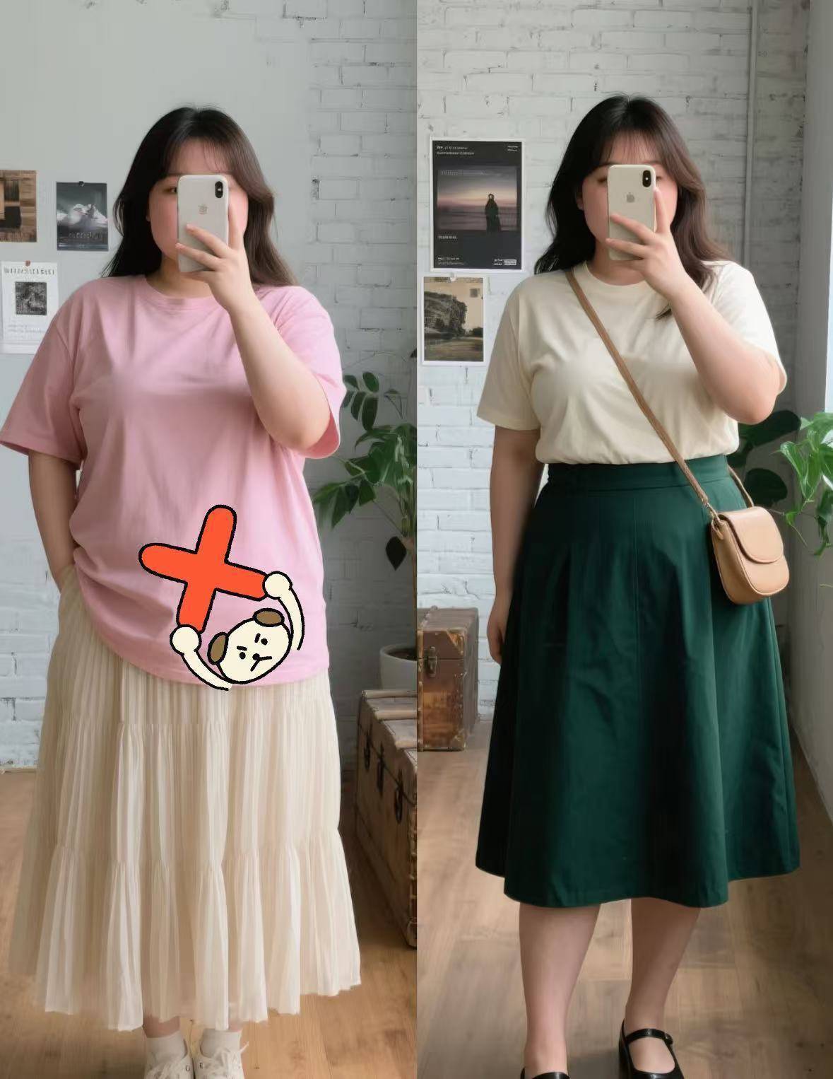 避雷点:别选太硬挺的面料(牛仔除外),软垂的雪纺、灯芯绒更藏肉;长度到小腿肚最细处,露出脚踝,轻盈感翻倍。
