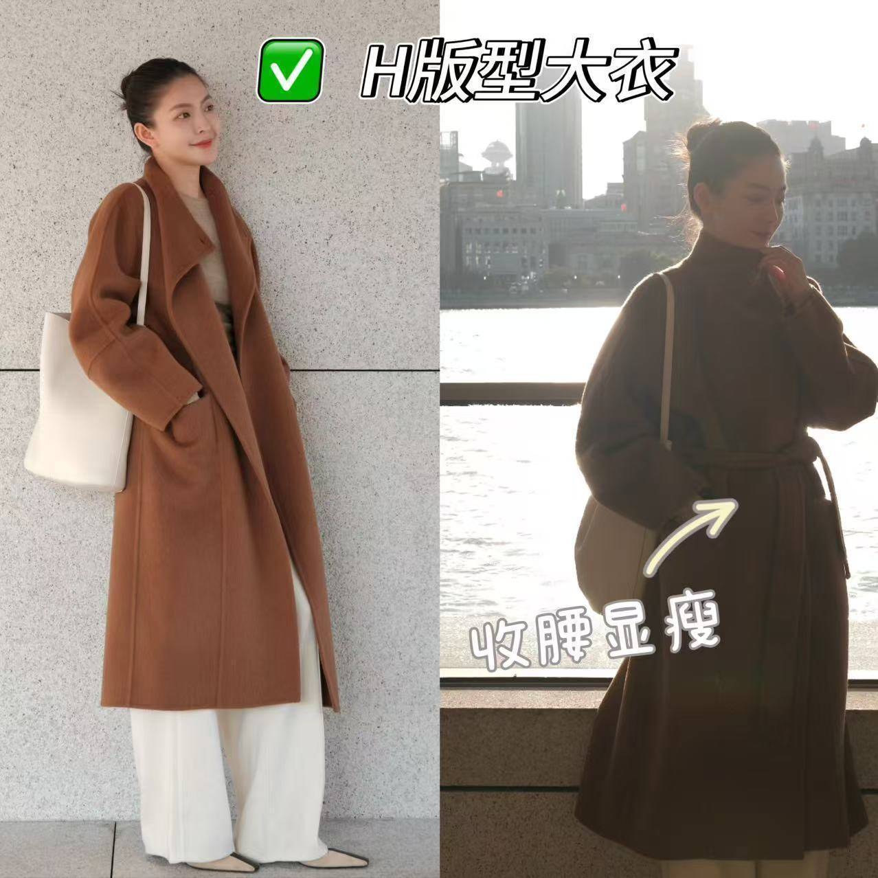 姐妹们,别再穿紧身大衣勒出小肚腩了!H型大衣(直筒廓形,肩线自然垂落)才是显瘦王。