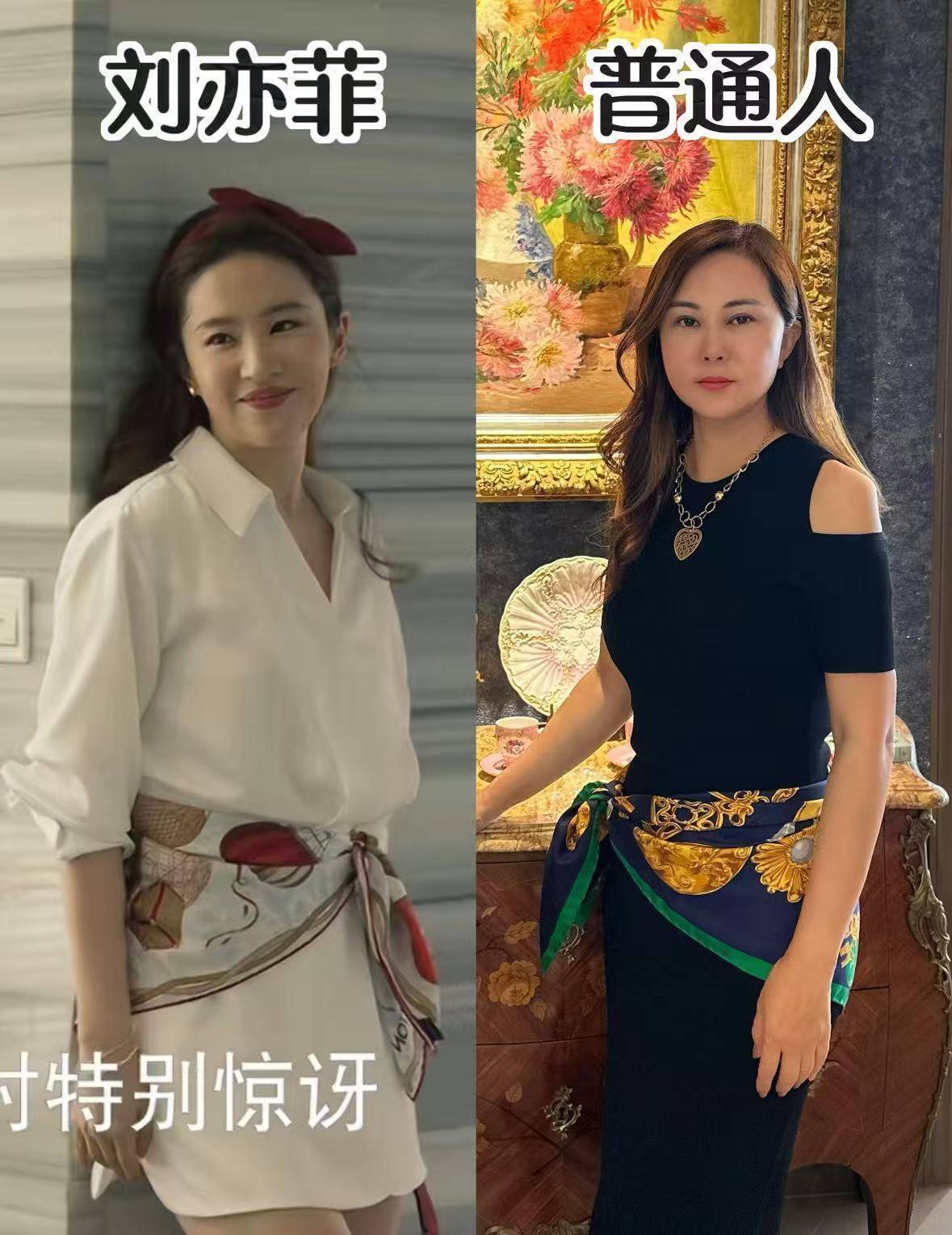 腰腹有肉别慌,丝巾绑腰拯救你!把方巾对折成三角,松松系在侧腰(别勒太紧!留褶皱感),视觉上腰细2cm。或者当腰带用,比如穿宽松毛衣时,系条琥珀色丝巾,腰线瞬间出来,还能提亮深色穿搭。