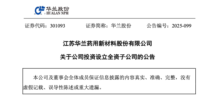 公告显示,华兰股份2025年9月26日召开第六届董事会第六次会议,审议通过了《关于公司投资设立全资子公司的议案》。根据公司战略布局和产业发展的需要,公司拟使用自有资金人民币5,000万元在海南省投资设立全资子公司。